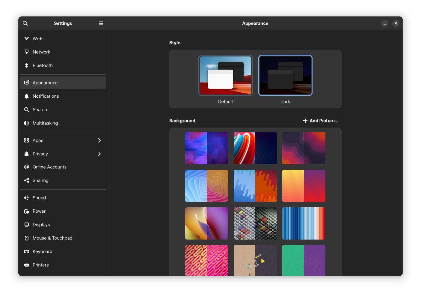 Пока не ушёл далеко от тем оформления, Gnome поддерживает динамические обои рабочего стола, позволяющие использовать различные изображения для светлой и тёмной темы. Оказывается, что можно делать такие обои и самому с помощью утилиты Dynamic Wallpaper. Эта простая утилита позволяет сделать динамические обои из двух любых изображений: